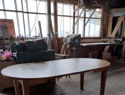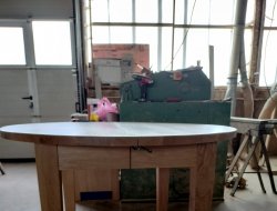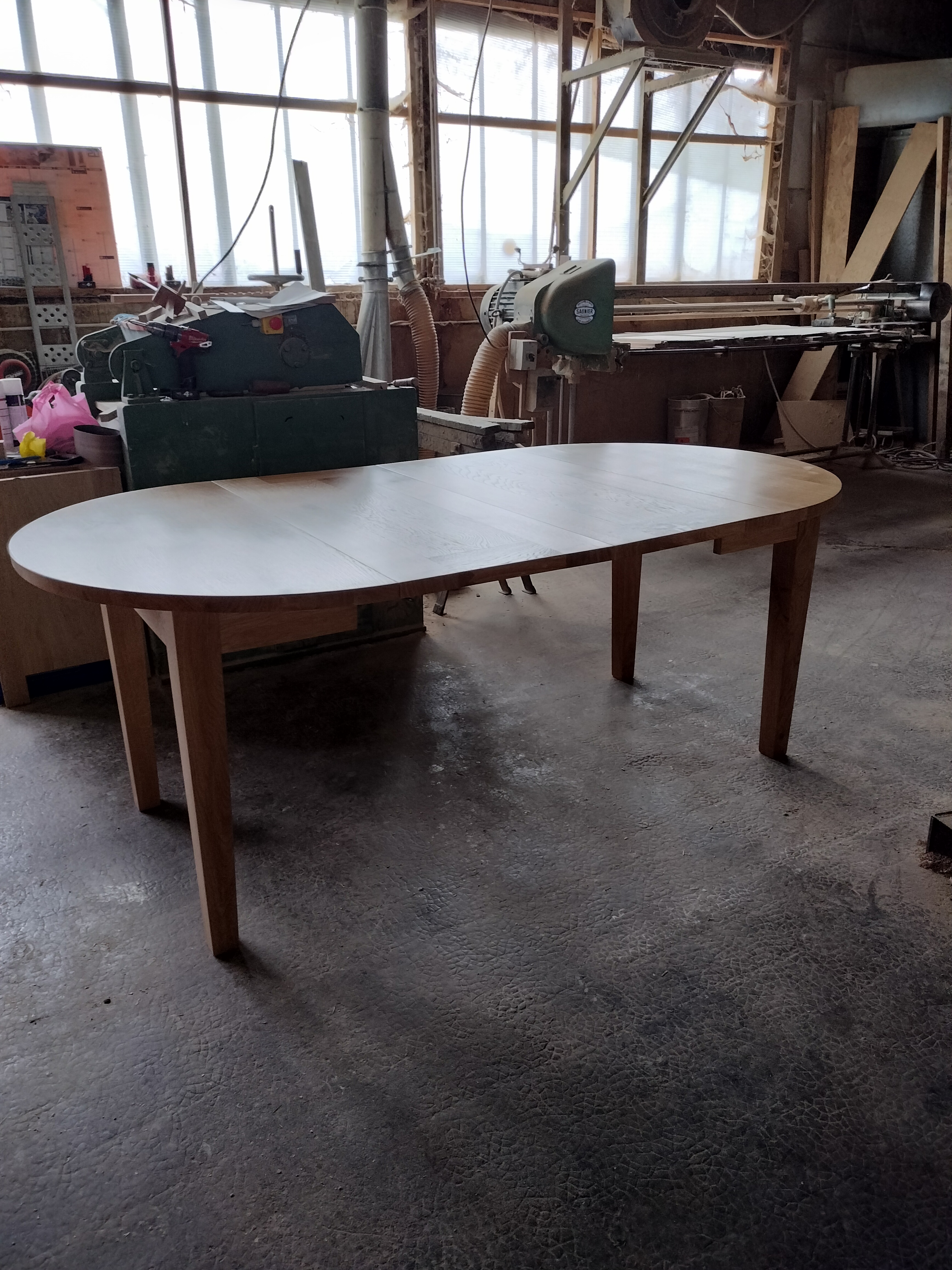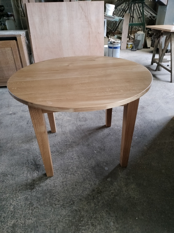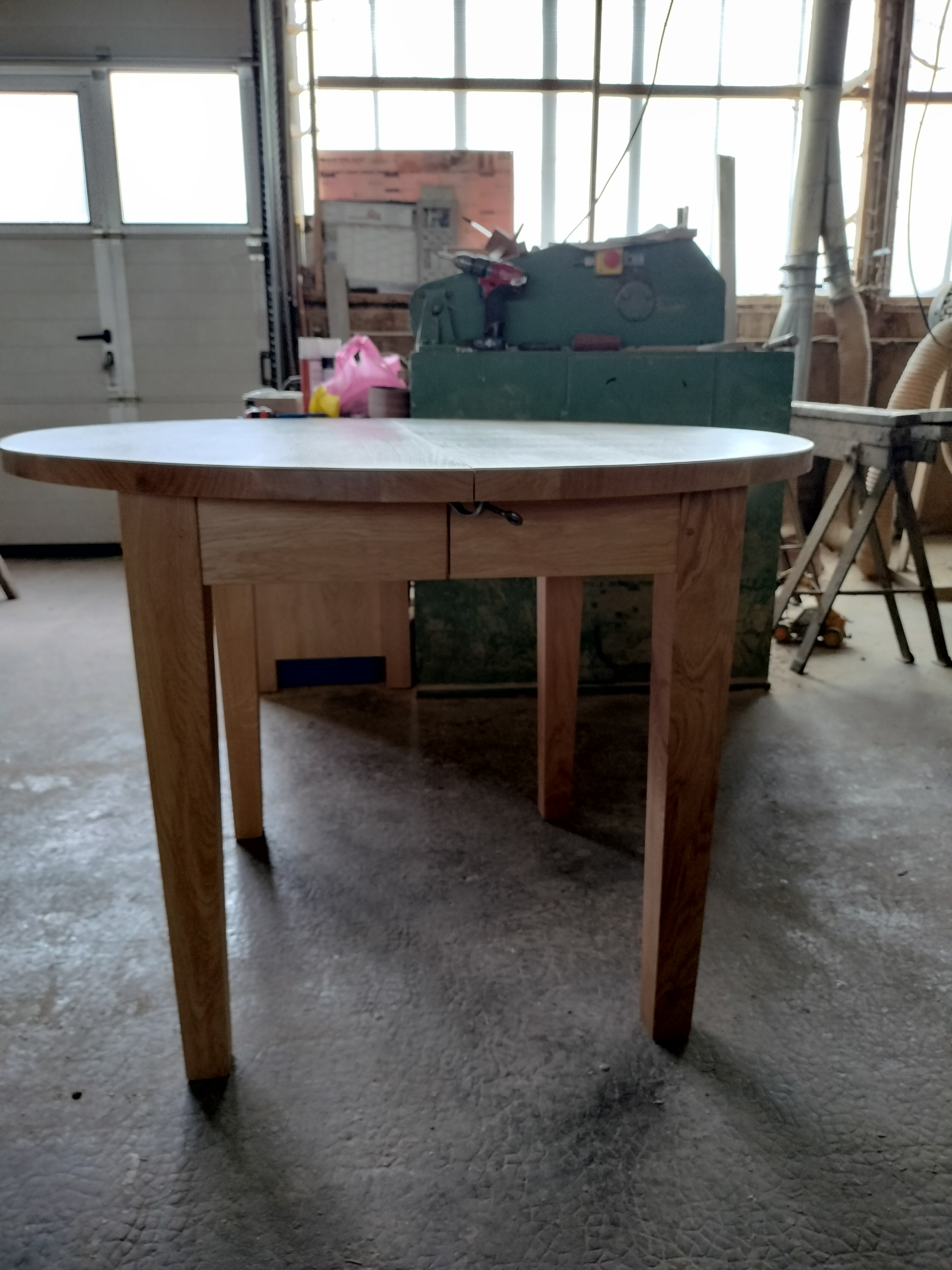 Table ronde dessus de fil 2 allonges centrale de 0.48. long 1.10 .